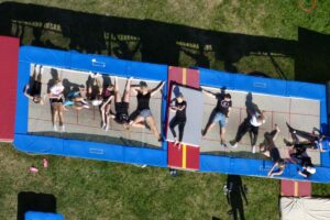 De afdeling trampolinespringen van de SV Omnia 2000 Aalsmeer organiseerde op zondag 29 september 2019 hier een buiten fun wedstrijd en geeft daarnaast de mogelijkheid aan toeschouwers en voorbijgangers om ook de trampolines even te komen proberen! Een unieke kans om op zo’n mooie plek een gat in de lucht te springen. Aan het trampolinespringen waren geen kosten verbonden.